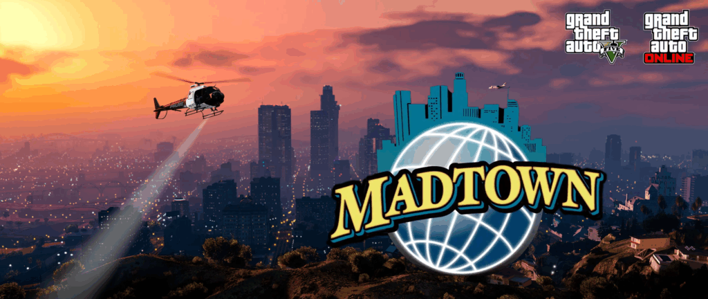 MADTOWNは、ゲーム『Grand Theft Auto V』を舞台にしたロールプレイング(RP)イベント。参加者はそれぞれがキャラクターになりきり、仮想都市「MAD TOWN」で生活する。警察官、ギャング、医者、起業家…台本は一切なく、参加者のアドリブだけで物語が進行します。